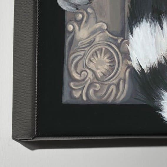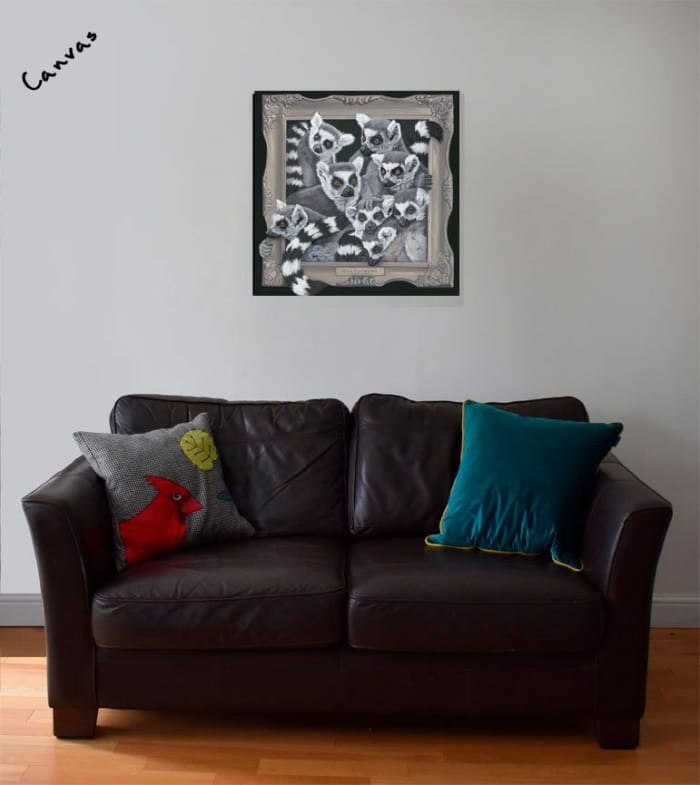 For quite a while I knew I wanted to paint a group of ring tailed lemurs. One reason is that I just love them! The other reason is that a group of them is called a conspiracy!! I played around with different ideas in my head for quite a long time, not one of them making the grade. My hubby and I decided that a weeks break in Madeira was called for and we had a fabulous time wandering around the city of Funchal. We explored the city popping into little galleries and gift shops, (I came back with a rather nice fused glass bracelet) . In one lovely little gift shop sitting in the window was a canvas with a photograph of a kitten sitting inside a picture frame, light bulb moment!! The lemurs could be in the frame looking as though they would climb out of it! The beginning of my frames animal series.